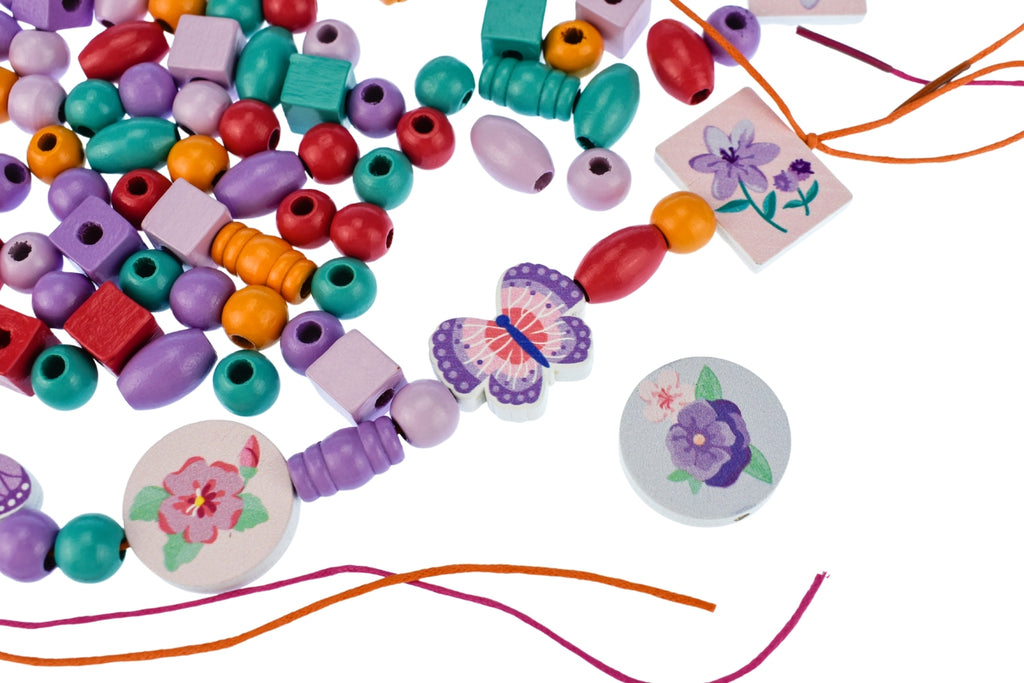 This delightful kit offers a wide array of possibilities for crafting unique jewellery pieces. With over 150 beads and 5 lengths of string included, children can experiment with various bead combinations and stringing techniques to design bracelets, necklaces, and more. The kit features 135 wooden beads in assorted shapes, sizes, and colours, allowing kids to mix and match to their heart's content. Additionally, the 16 charming garden-themed charms add an extra touch of whimsy to each creation.