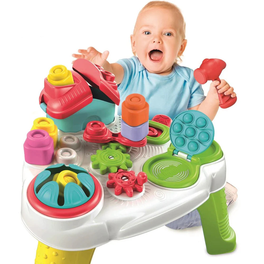 This engaging activity table introduces children to the soft Clemmy blocks world.