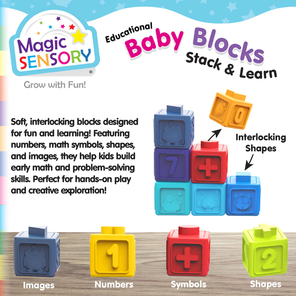 Introduce your little one to the world of numbers, colours, and stacking fun with the Magic Sensory 12-Piece Baby Blocks! These soft, textured, and squeezable blocks are perfect for little hands to grasp, stack, and explore.