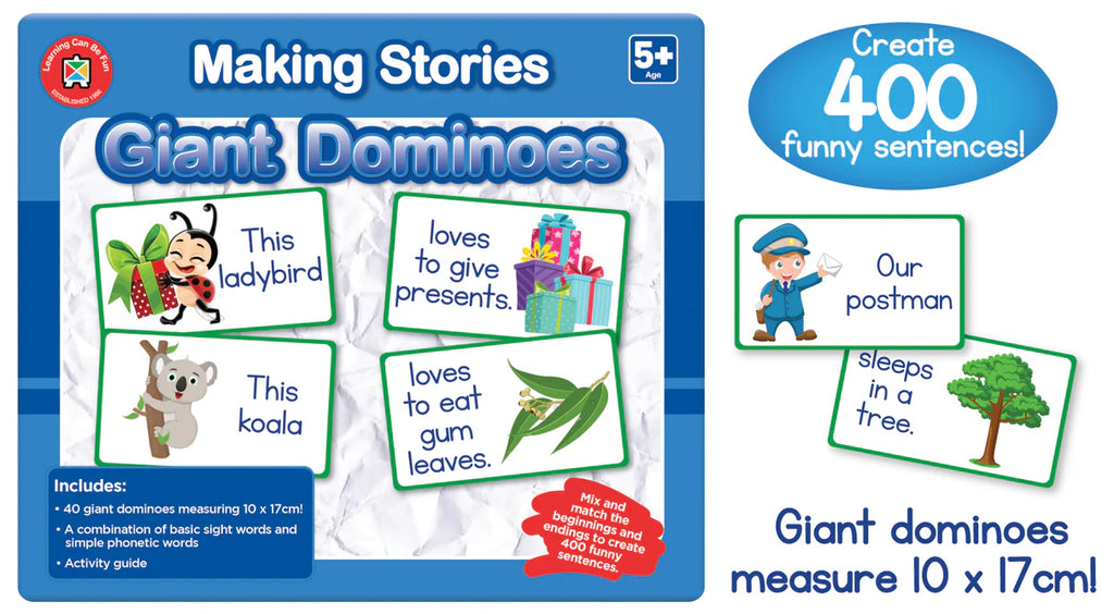 Making Stories Giant Dominoes is a fun and engaging resource to help teach young learners reading comprehension and sentence structure. The colourful illustrations provide valuable picture clues as children build hilarious stories by mixing and matching dominoes.