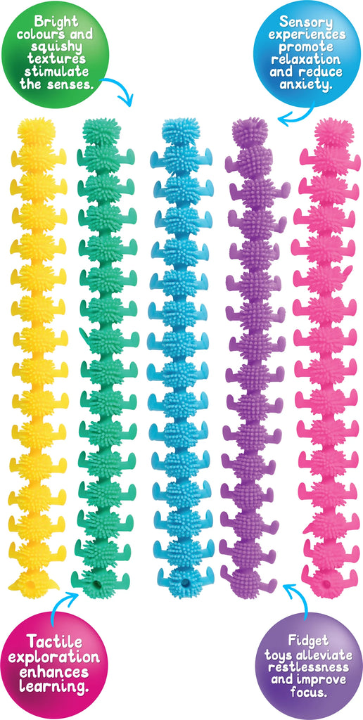 With their soft, textured bodies and bright colours, these stretchy caterpillars provide endless sensory fun and creative play.