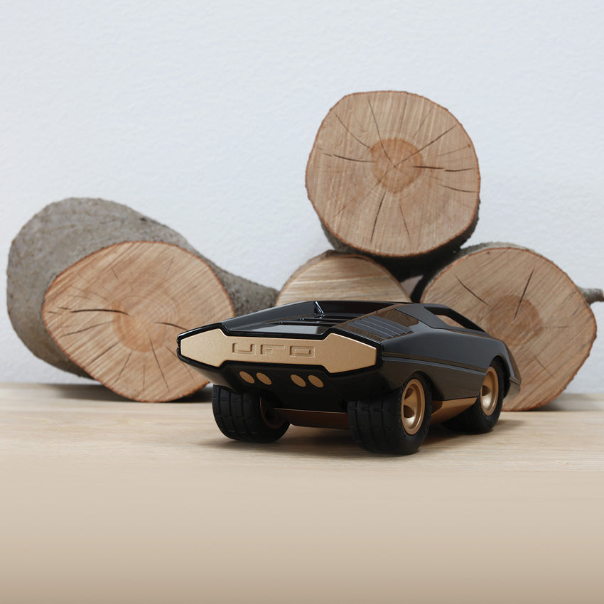 Evoke the spirit of adventure and exploration with the UFO Cannone, paying homage to the iconic and unworldly concept cars of the 1970's. Looking futuristic and very stylish in glossy black with champagne gold rims and detail, it is made from high quality robust ABS Plastic, built to withstand the rigors of play and stand the test of time. The high gloss UV coating has been hand-polished with care so whether you're a collector seeking a timeless piece of design or a child at heart ready for imaginative adventures, the UFO Cars are sure to impress.